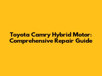 Toyota Camry Hybrid Motor: Comprehensive Repair Guide