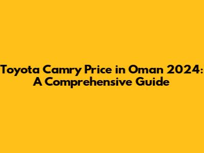 Hey guys! Are you curious about the Toyota Camry price in Oman for 2024? You've come to the right place! The Toyota Camry has consistently been a top choice for drivers in Oman, known for its reliability, comfort, and overall value. Whether you're a long-time Camry enthusiast or considering buying one for the first time, understanding the pricing landscape is crucial. This guide dives deep into what you can expect to pay for a new Camry in Oman, exploring the various factors that influence its cost and providing insights to help you make a well-informed decision. From base models to fully loaded trims, we'll cover it all, ensuring you're equipped with the knowledge to navigate the Omani car market with confidence.
