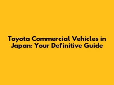 Toyota Commercial Vehicles In Japan: A Comprehensive Guide