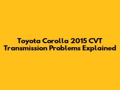 Toyota Corolla 2015 CVT Transmission Problems Explained