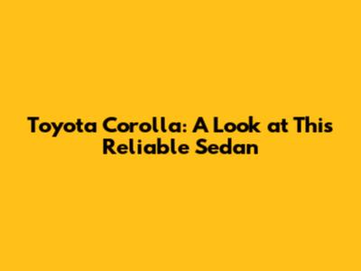 Toyota Corolla: A Look At This Reliable Sedan