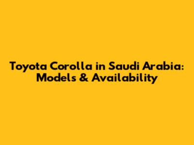 Toyota Corolla In Saudi Arabia: Models & Availability