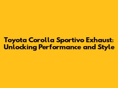 Toyota Corolla Sportivo Exhaust: Upgrades & Performance