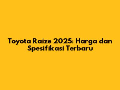 Toyota Raize 2025: Harga Dan Spesifikasi Terbaru