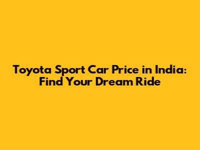 Toyota Sport Car Price In India: Find Your Dream Ride
