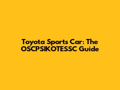 Toyota Sports Car: The OSCPSIKOTESSC Guide