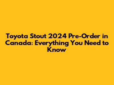 Toyota Stout 2024: Pre-Order Details In Canada