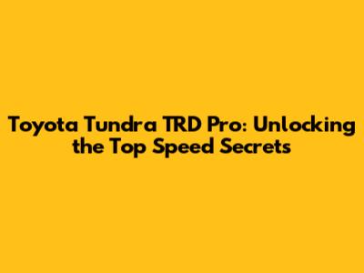 Toyota Tundra TRD Pro: Unlocking The Top Speed Secrets