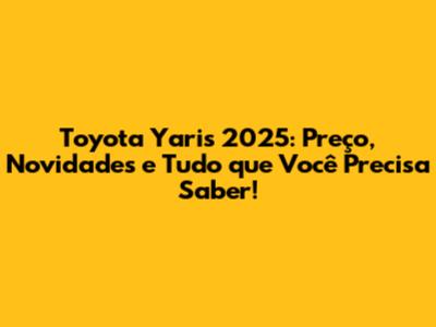 Olá, pessoal! Se você está de olho no mercado automotivo e procurando um carro econômico, confiável e cheio de tecnologia, então você está no lugar certo! Hoje, vamos mergulhar no universo do Toyota Yaris 2025. Prepare-se para descobrir tudo sobre preço, design, novidades, e o que esperar dessa máquina que promete fazer sucesso nas ruas. Vamos nessa?