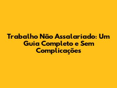 Trabalho Não Assalariado: Guia Completo E Sem Complicações