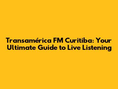 Transamérica FM Curitiba: Listen Live & Stay Connected