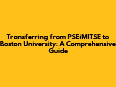 Hey guys! So, you're looking to make the leap from PSEiMITSE to the prestigious Boston University (BU)? Awesome! That's a fantastic goal. This guide is designed to walk you through everything you need to know about the process, from understanding the requirements to navigating the application and ensuring a smooth transition. We'll cover everything from the academic qualifications you'll need to the practical steps of applying, ensuring you're well-prepared for this exciting journey. Let's dive in and break down what it takes to successfully transfer from PSEiMITSE to BU. Buckle up, because we've got a lot of ground to cover! This guide aims to transform your goal of transferring into a tangible plan with clear steps. We'll look at the specific requirements, important deadlines, and valuable resources you should use to help make this transition as easy and successful as possible. This article aims to prepare you for the adventure ahead!