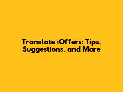 Translate IOffers: Tips, Suggestions, And More