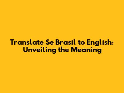 Translate 'Se Brasil' To English: A Comprehensive Guide
