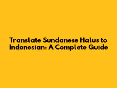 Translate Sundanese Halus To Indonesian: A Complete Guide