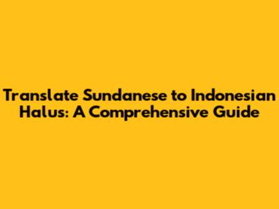 Translate Sundanese To Indonesian Halus: A Comprehensive Guide