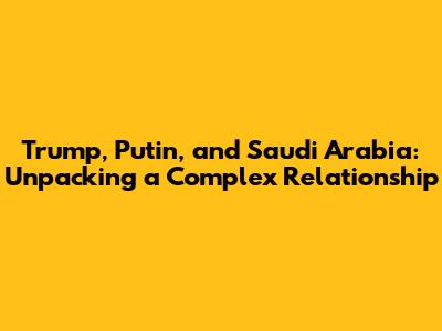 Trump, Putin, And Saudi Arabia: A Complex Relationship