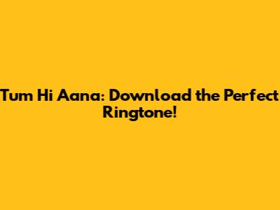 Tum Hi Aana: Download The Perfect Ringtone!