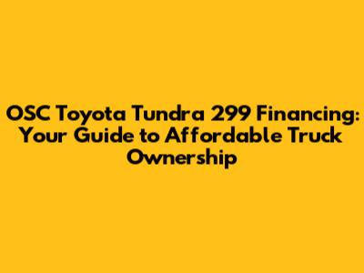 Hey truck enthusiasts! Looking for a robust and reliable pickup without breaking the bank? You might have stumbled upon the enticing prospect of OSC Toyota Tundra 299 financing. But what's the real deal? This article dives deep into the OSC Toyota Tundra 299 financing landscape, exploring the ins and outs to help you understand if this financing option is the right fit for your needs. We'll break down the fine print, compare it to other financing methods, and give you the lowdown on how to snag the best possible deal. Get ready to explore the world of Tundra ownership with a focus on affordability and smart financial decisions. Let's get started, guys!