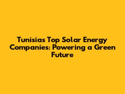 Tunisia's Top Solar Energy Companies: Powering A Green Future