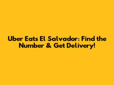 Uber Eats El Salvador: Find The Number & Get Delivery!