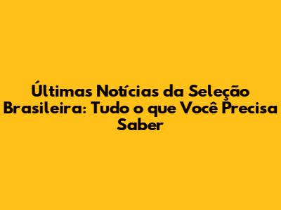 Para não perder nenhum lance da Seleção Brasileira, é fundamental saber onde assistir aos jogos e como acompanhar as notícias mais recentes.