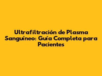 Preguntas Frecuentes sobre la Ultrafiltración de Plasma Sanguíneo