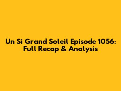 Un Si Grand Soleil Episode 1056: Full Recap & Analysis