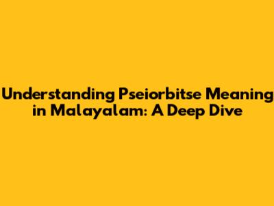 Understanding 'Pseiorbitse' In Malayalam: A Comprehensive Guide