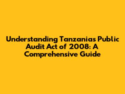 Hey guys! Ever wondered about how Tanzania keeps its finances in check? Well, the Public Audit Act of 2008 is a big deal in making sure everything's above board. This guide will walk you through the nitty-gritty, breaking down what this act is all about, why it's important, and what it means for Tanzania. Let's dive in and make sense of this crucial piece of legislation!