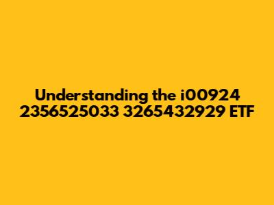 Understanding The I00924 2356525033 3265432929 ETF
