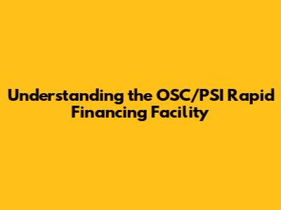 Understanding The OSC/PSI Rapid Financing Facility
