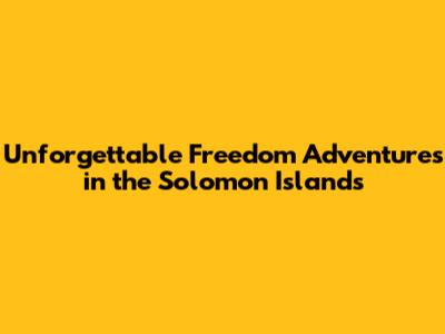 Unforgettable Freedom Adventures In The Solomon Islands