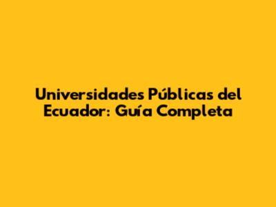 Universidades Públicas Del Ecuador: Guía Completa