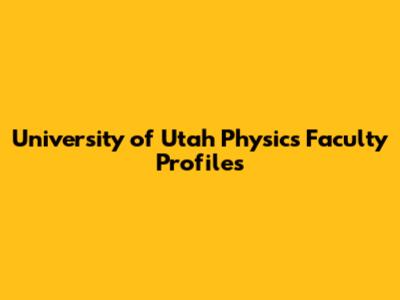 University Of Utah Physics Faculty Profiles