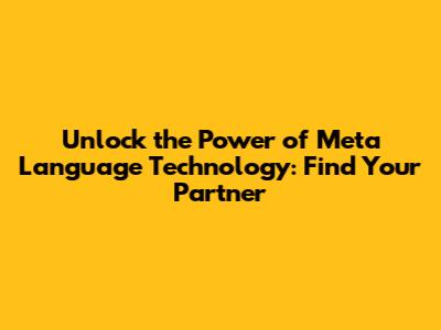 Unlock The Power Of Meta Language Technology: Find Your Partner
