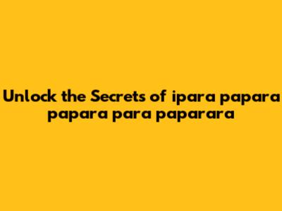 Unlock The Secrets Of ipara Papara Papara Para Paparara