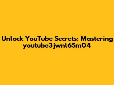 Unlock YouTube Secrets: Mastering Youtube3jwnl65m04