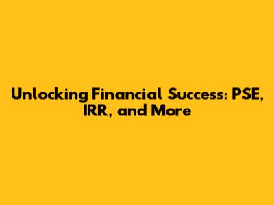 Unlocking Financial Success: PSE, IRR, And More