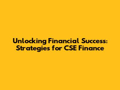 Unlocking Financial Success: Strategies For CSE Finance