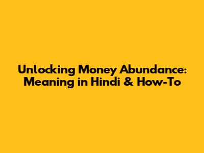 Unlocking Money Abundance: Meaning In Hindi & How-To