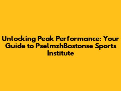 Unlocking Peak Performance: Your Guide To PselmzhBostonse Sports Institute