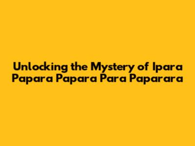 Unlocking The Mystery Of 'Ipara Papara Papara Para Paparara'