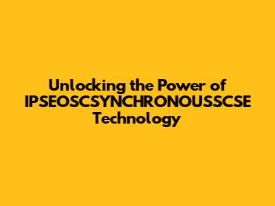 Unlocking The Power Of IPSEOSCSYNCHRONOUSSCSE Technology