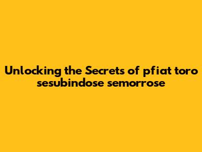 Unlocking The Secrets Of Pfiat Toro Sesubindose Semorrose