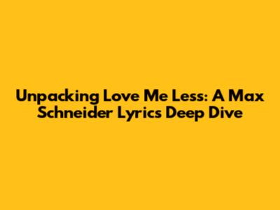 Unpacking 'Love Me Less': A Max Schneider Lyrics Deep Dive