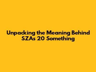Hey music lovers! Ever found yourself completely lost in a song, feeling like it was written just for you? That's the magic of SZA, and her track "20 Something" is a prime example. This song isn't just a catchy tune; it's a deep dive into the messy, beautiful, and often confusing world of your twenties. We're gonna break down the meaning behind 20 Something SZA, explore her lyrics, and see why this song resonates so strongly with so many people. Get ready to feel seen, heard, and maybe even a little bit nostalgic. Let's get started, shall we?