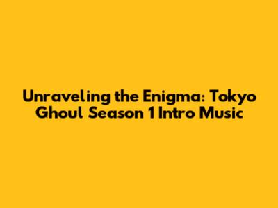 Unraveling The Enigma: Tokyo Ghoul Season 1 Intro Music