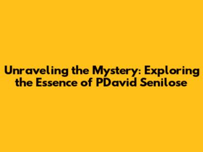 Unraveling The Mystery: Exploring The Essence Of PDavid Senilose