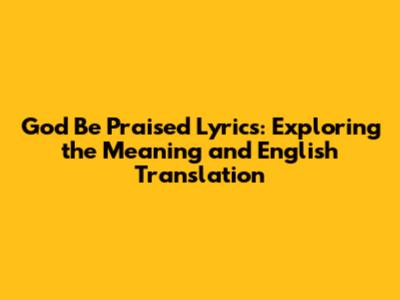 Unveiling 'God Be Praised' Lyrics: A Deep Dive Into Meaning & Translation